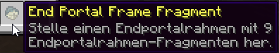 Endportalrahmen-Fragmente, sind genau so wie alle anderen Fragmente, Gegenstände die wir auf unserem Server erstellt haben. Teilweise sind dadurch Gegenstände aus dem Kreativmodus erhältlich, wie in diesem Fall.