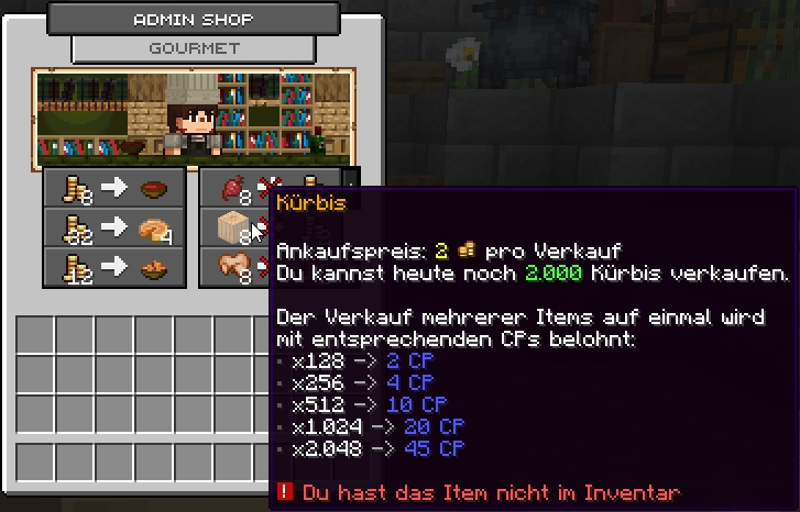 |       8x Kürbisse       | 2 ![](https://1077141654-files.gitbook.io/~/files/v0/b/gitbook-x-prod.appspot.com/o/spaces%2FrIGT88424BUrBgzefum5%2Fuploads%2FXzYIyWhfTJJsFzNGNQcV%2Fcoins.png?alt=media\&token=e9815d14-6daa-4d9b-9327-8603f3a994a9) |                 36                |