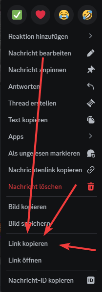 Hierfür empfehlen wir das Bild im Discord zu teilen, und dann mit Rechtklick den Link vom Bild zu kopieren.<br>